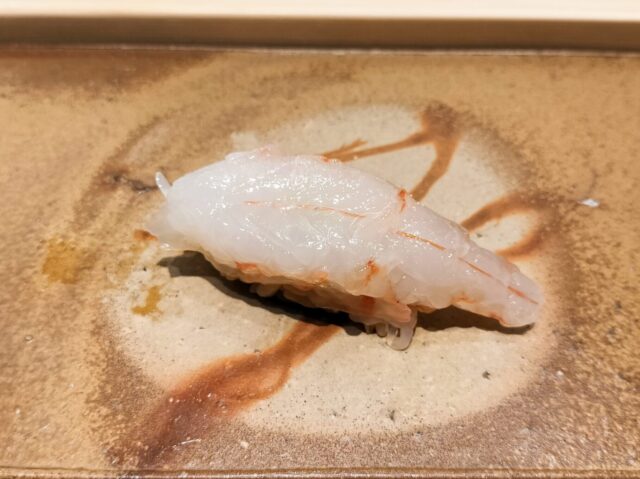 コースが終わってまだ余裕があったので、コース料理で出ていないネタがほしいと追加注文して、シマアジと穴子をいただきました。